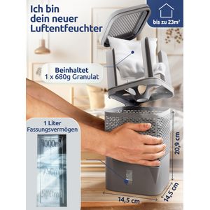 Für Räume bis 23 m² reicht ein Gerät aus, aber bei stärkeren Problemen kannst du mehrere kombinieren. Die Bedienung ist unkompliziert: Granulatbeutel einlegen, Deckel schließen, fertig. Keine Einstellungen, keine Kabel. Praktisch für Ecken, Schränke oder Orte ohne Steckdose.
