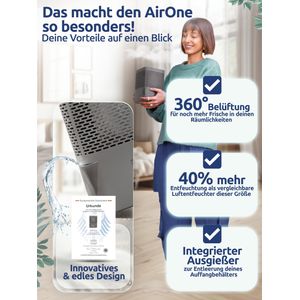 Der BonAura® AirOne Luftentfeuchter arbeitet stromlos und ist ideal für Räume bis 23m². Mit 360° Belüftung, integriertem Ausgießer und Füllstandsanzeige bietet er effektiven Schutz gegen Feuchtigkeit, Schimmel und Gerüche.