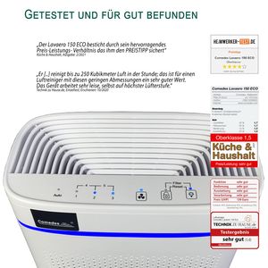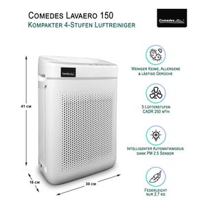 Der Comedes Lavaero 150 eco kombiniert ein vierstufiges Filtersystem mit praktischer Anpassungsfähigkeit. Sein Nanosilber-Vorfilter hält grobe Partikel zurück und wirkt antibakteriell, während der HEPA-Filter selbst Mikropartikel wie Pollen oder Feinstaub effizient entfernt. Dank Aktivkohle werden Gerüche gebunden – besonders praktisch, wenn’s mal rauchig wird.