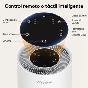 Der Maxcio Luftreiniger filtert effektiv 99,98% von Pollen, Staub und Tierhaaren. Er bietet Touch- und Fernsteuerung, Nachtlicht und Kindersicherung.