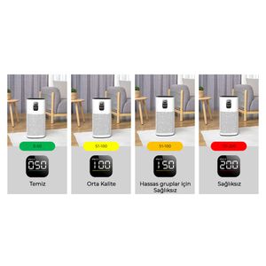 Der Proscenic A9 Luftreiniger kombiniert effiziente Filtertechnik mit smarten Steuerungsmöglichkeiten. Mit einem CADR-Wert von 460 m³/h bearbeitet er größere Räume bis 90 m² zügig – praktisch für offene Wohnbereiche oder Alltagssituationen wie Kochen. Das vierstufige Filtersystem inklusive H13 HEPA-Filter packt Partikel ab 0,3 Mikron und reduziert dabei auch Gerüche durch Aktivkohleeinsatz.