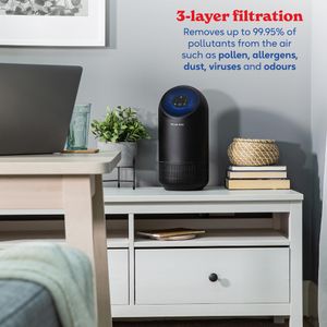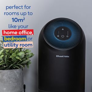 Der Russell Hobbs RHAP1001B ist ein kompakter Luftreiniger mit HEPA-Filter, der 99,5% der Partikel einfängt und ideal für kleine Räume bis 10 m² ist.