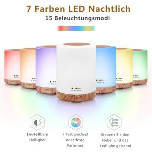 Hinweis: Ätherische Öle sind nicht im Lieferumfang enthalten. Die LED-Farben wirken je nach Raumhelligkeit unterschiedlich intensiv.