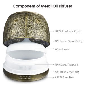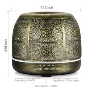 Der SALKING Aroma Diffuser kombiniert Aromatherapie und Luftbefeuchtung in einem stilvollen Vintage-Design mit Metallgehäuse und 7-farbigem Nachtlicht.