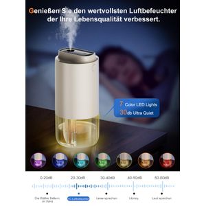 Der Jurqqer H3-White ist ein kompakter Luftbefeuchter, der sich besonders für unterwegs eignet. Mit 250 ml Fassungsvermögen passt er in die meisten Getränkehalter oder Taschen – praktisch fürs Auto, Büro oder Reisegepäck. Dank der Silberionen-Technologie wird das Wasser vor der Vernebelung gereinigt, was bakterielles Wachstum hemmt.