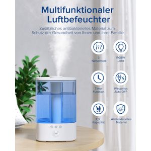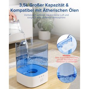 Der Maxcio 3,5L Luftbefeuchter bietet effiziente Luftbefeuchtung mit leiser Ultraschalltechnologie, ideal für Schlafzimmer und Kinderzimmer. Er verfügt über ein praktisches Top-Fill-Design und eine Aromatherapieoption.