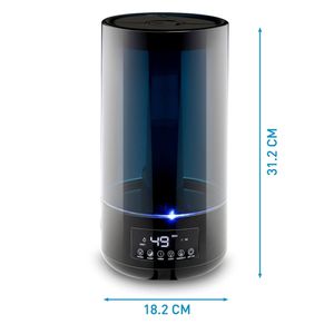 Der Grundig Luftbefeuchter und Aroma Diffuser kombiniert zwei Funktionen in einem schlanken Gerät. Mit 4,3 Litern Fassungsvermögen eignet’s sich für Räume bis 35 m² – ideal fürs Schlafzimmer oder kleinere Wohnbereiche. Das Hygrometer zeigt die aktuelle Luftfeuchtigkeit an, aber Achtung: Die Messung erfolgt nah am Gerät. Wer präzise Werte braucht, sollte zusätzlich ein separates Messgerät verwenden.
