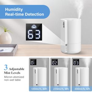 Der Sejoy Luftbefeuchter bietet leise Ultraschalltechnologie und intelligente Feuchtigkeitsüberwachung für große Räume, ideal für Pflanzen und Schlafbereiche.