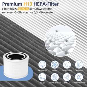 Der Yoneenair Ersatzfilter für den LEVOIT Core 200S Luftreiniger bietet ein 3-Stufen-Filtersystem mit H13-HEPA-Filter, Aktivkohle und Nylon-Vorfilter für bessere Luftqualität.