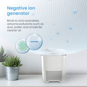 This compact air purifier combines a True HEPA filter, activated carbon layer, and pre-filter to address common indoor pollutants like dust, pollen, and pet dander. The addition of a negative ion generator aims to neutralize lingering odors from smoke or cooking. Designed for rooms up to 50 sq.ft., it’s a practical option for bedrooms, home offices, or nurseries where space matters.