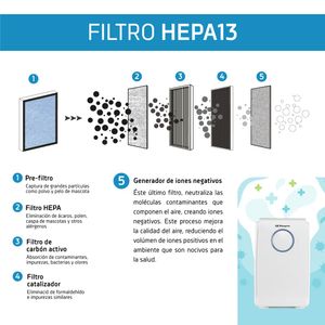 El Purificador Orbegozo PU 1000 ofrece un sistema de purificación de 5 etapas, ideal para mejorar la calidad del aire en espacios de hasta 35 m².