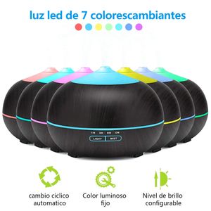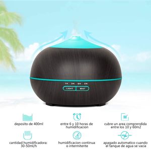 Humidificador y difusor ultrasónico de 400 ml con luz LED de 7 colores, ideal para crear un ambiente relajante.
