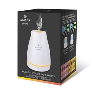 Humidificador y difusor de aroma Ambar Perfums, ideal para crear un ambiente relajante en el hogar con luz fija o multicolor.