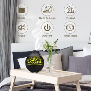 Difusor de aceites esenciales compacto de 180 ml con 7 luces LED y apagado automático, ideal para hogar y oficina.