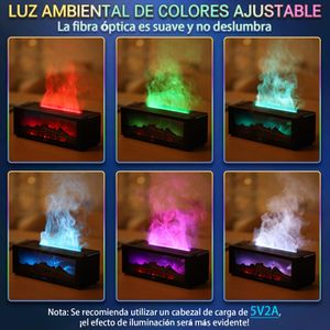 Difusor de aroma BuzzoXerex con efecto de llama realista, control remoto y luces LED multicolor, ideal para hogar y oficina.