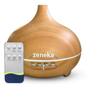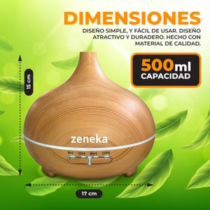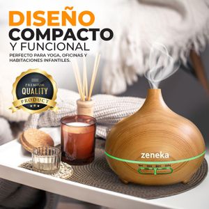 El humidificador ultrasónico Genérico funciona como difusor de aromas y humidificador. Su diseño en madera clara aporta un toque moderno, aunque no destaca por materiales premium. La capacidad de 300 ml permite hasta seis horas de uso continuo, ideal para espacios reducidos como mesitas de noche o escritorios.