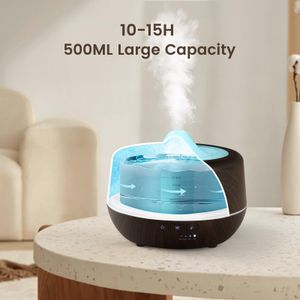 Difusor y humidificador ultrasónico de 500 ml con luces LED y apagado automático.