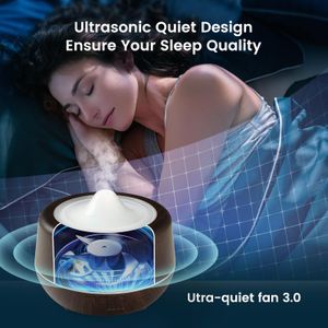 Tiene 7 luces LED ajustables en dos intensidades. Puedes optar por un color fijo o activar el modo cíclico para crear atmósferas dinámicas. Los temporizadores (2h, 4h, 10 segundos o continuo) ofrecen flexibilidad, y el apagado automático evita riesgos si el agua se agota.