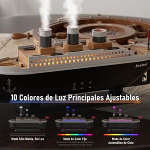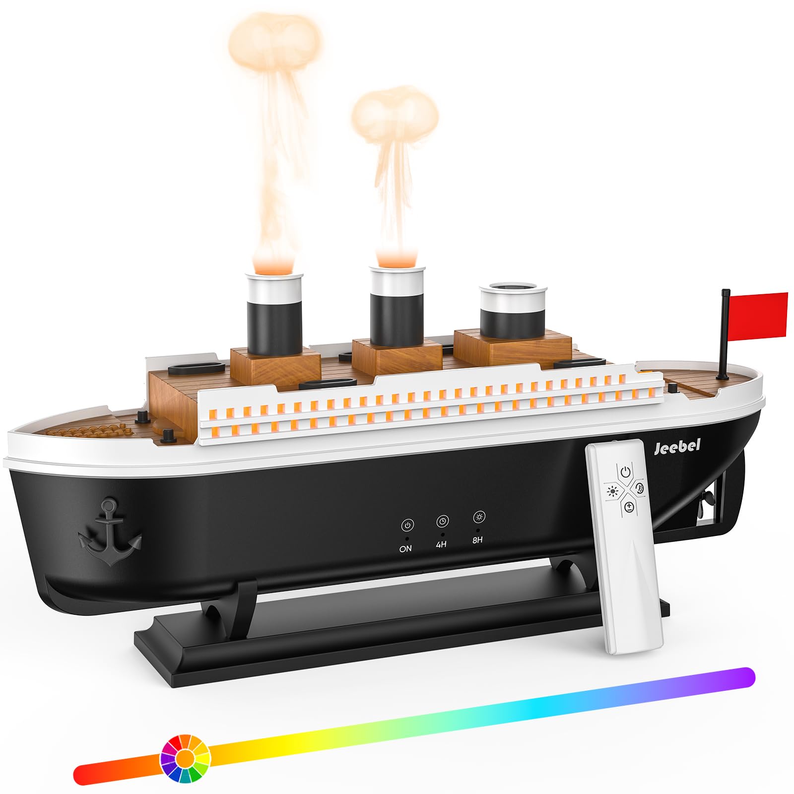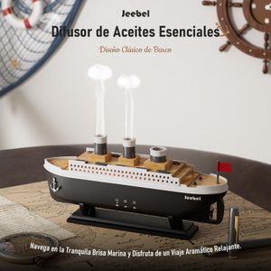 Difusor Jeebel en forma de barco, ideal para aromaterapia, con LED multicolor y control remoto, perfecto para dormitorios y oficinas.