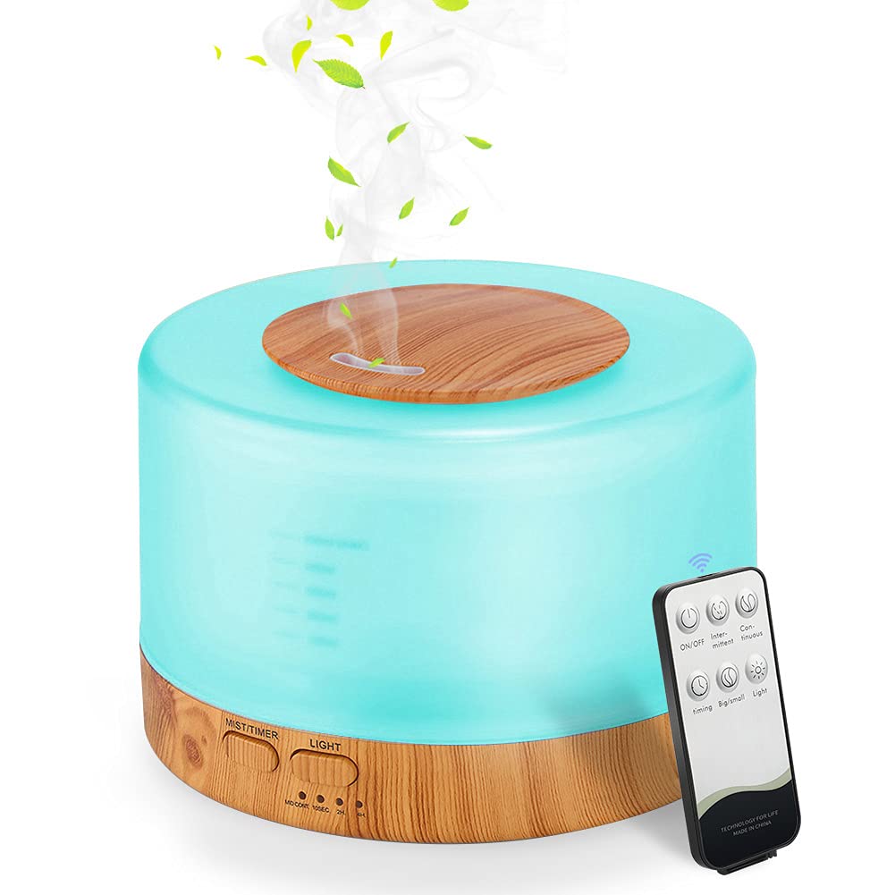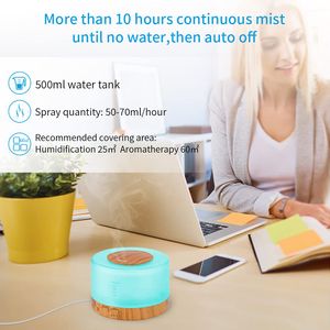 Humidificador ultrasónico y difusor de aromas de 500 ml con temporizador, 7 colores LED, ideal para hogar, yoga y salón.