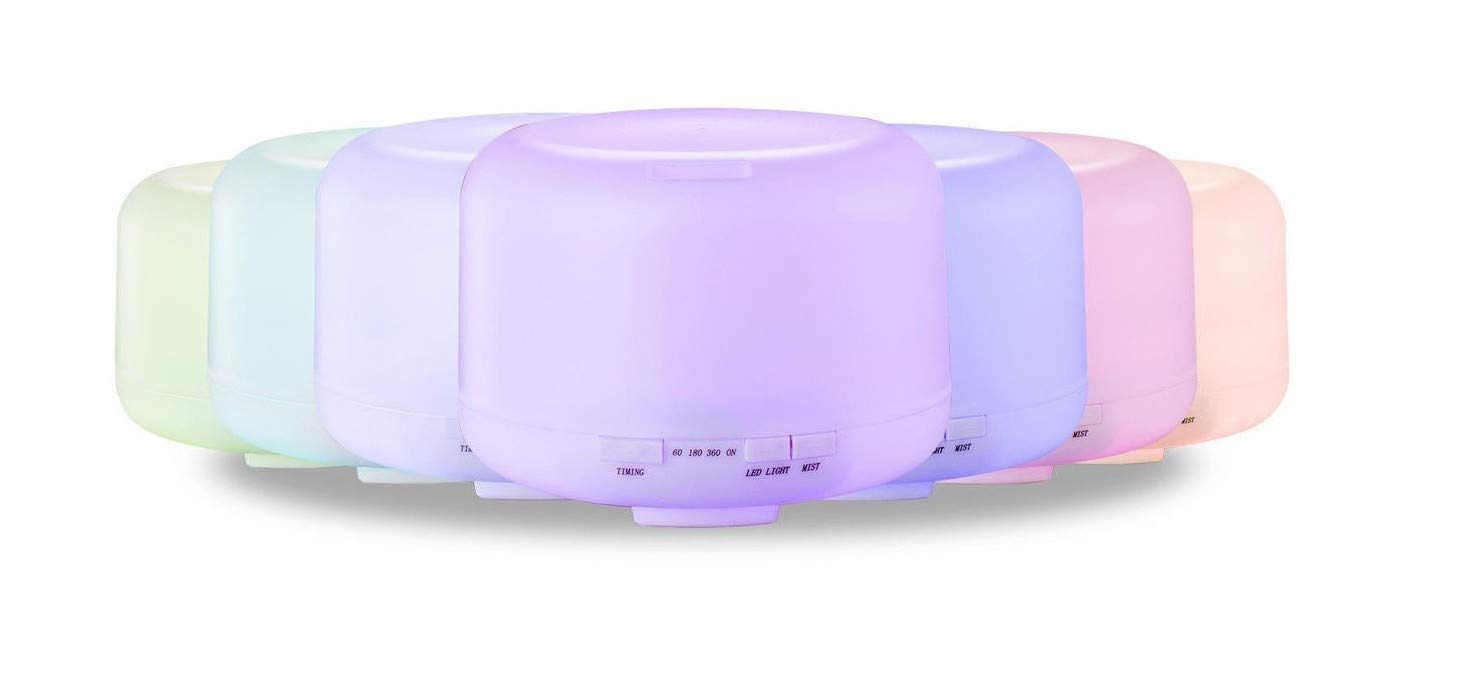 Difusor de aromas de 500 ml con iluminación LED de 7 colores y temporizador, ideal para aromaterapia.