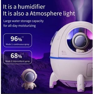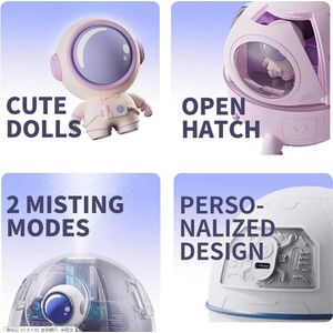 El humidificador portátil Fyearfly combina funcionalidad y diseño en un formato compacto. Su estética, inspirada en una cápsula espacial con figura de astronauta, resulta visualmente atractiva para espacios reducidos. Los tonos brillantes y las luces RGB integradas ofrecen un toque lúdico, especialmente en habitaciones infantiles.