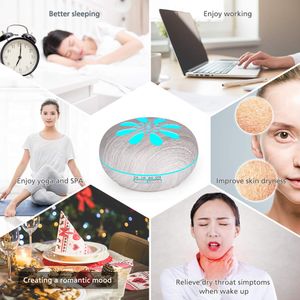 Humidificador ultrasónico GeeRic 550ml con aromaterapia, luces LED ajustables y apagado automático para un ambiente relajante.
