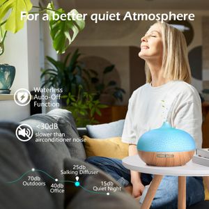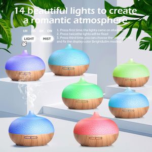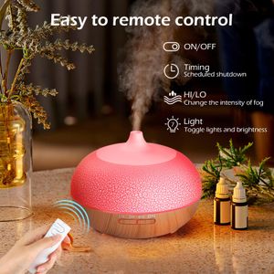 Difusor de aceites esenciales GeeRic 550ML con control remoto y 7 colores LED, ideal para aromaterapia y humidificación silenciosa.