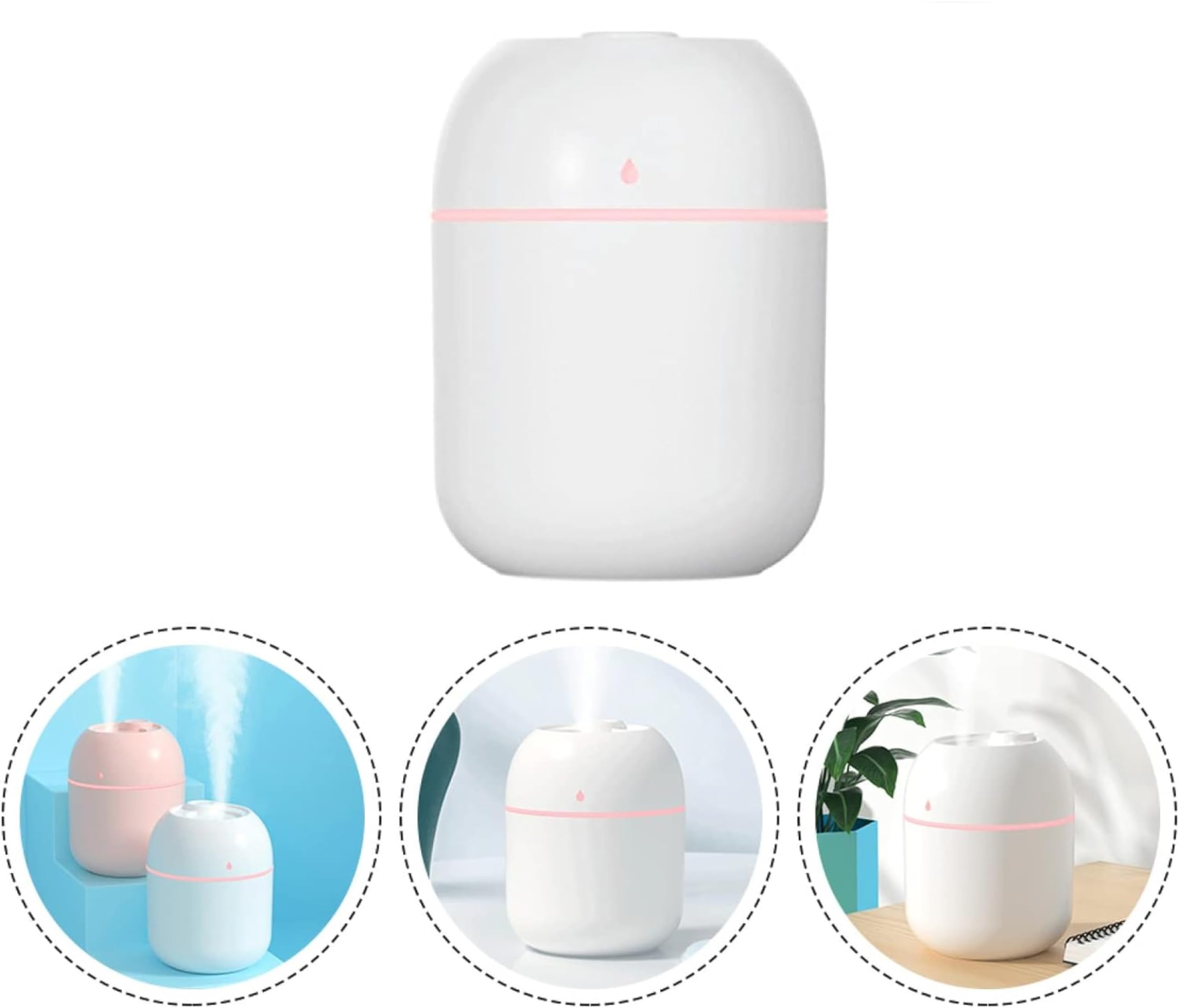 El humidificador Sandalfon es una opción compacta para espacios reducidos. Con 220 ml de capacidad, funciona hasta 6 horas continuas, ideal para el coche o la mesilla de noche. Su diseño blanco y minimalista se integra sin esfuerzo en cualquier ambiente, aunque quizás llame más la atención por sus siete luces LED ajustables.
