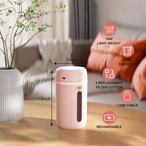 Humidificador portátil KARFUN, perfecto para oficinas, dormitorios y coches. Silencioso, con luz de 7 colores y apagado automático.