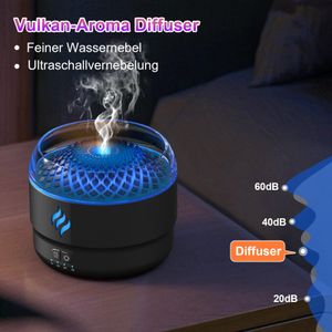 Este humidificador de aceites esenciales combina funcionalidad y diseño innovador. Fabricado en polipropileno (PP), su estructura compacta (13 x 13 x 11 cm) lo hace fácil de ubicar en espacios reducidos. El efecto de llama volcánica, creado mediante luz y niebla, aporta un ambiente cálido y dinámico. Puedes ajustar la intensidad según el momento: relajante para noches tranquilas o más vivo para reuniones.