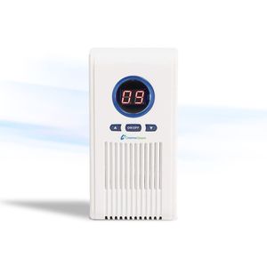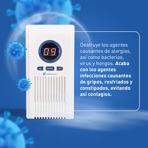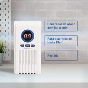 Generador de ozono portátil que desinfecta y elimina olores, ideal para mejorar la calidad del aire en espacios domésticos pequeños.