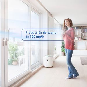 Este dispositivo portátil transforma oxígeno ambiental en ozono, actuando como purificador en áreas de hasta 25 m². Con una producción de 100 mg/h, está diseñado para neutralizar olores persistentes —desde mascotas hasta cocina— y reducir la presencia de alérgenos como bacterias o virus. Su uso es sencillo: se conecta directamente a un enchufe, ajustas el temporizador (entre 10 y 90 minutos) y listo. No requiere mantenimiento ni recambios, lo que lo hace práctico para necesidades puntuales.