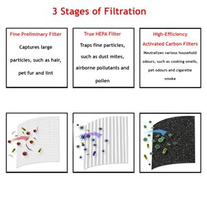 Filtro de recambio SPARES2GO para purificador de aire Levoit Vista 200 con sistema de filtración de tres etapas.