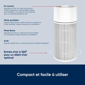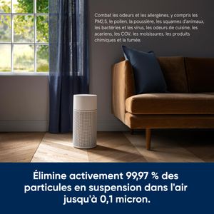 Certifié Energy Star, sa consommation équivaut à une ampoule LED (1,5 W). Le filtre intégré capture 99,99 % des pollens et 99,97 % des particules fines jusqu’à 0,1 micron, incluant fumées et poussières. Une couche de charbon actif neutralise les odeurs persistantes, bien que des retours clients signalent des limites sur les effluves tenaces comme la pyrolyse.
