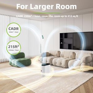Avec un débit d’air purifié (CADR) de 230 m³/h, ce purificateur s’adapte aux espaces allant jusqu’à 100 m². Idéal pour les chambres ou les salons, il renouvelle l’air jusqu’à quatre fois par heure dans une pièce de 20 m². Son système de filtration en trois étapes capture poussières, pollens et poils d’animaux, offrant une atmosphère plus saine sans dénaturer l’environnement.