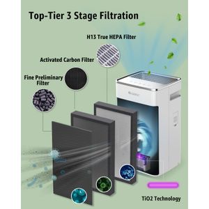 Purificateur d'air Gree avec filtration HEPA H13 et lampe UV, idéal pour éliminer 99,97% des allergènes et odeurs dans les grands espaces jusqu'à 80㎡.