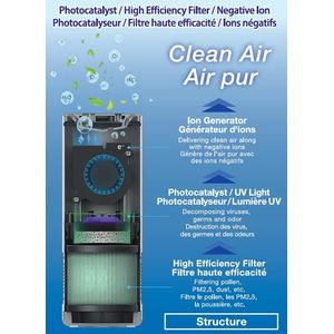 Le système associe un filtre à particules fines (PM2.5), une lampe UV-A pour la photocatalyse et un ioniseur. Ensemble, ils traitent à la fois les particules physiques et les composés organiques volatils. Le filtre EPA E12, certifié, nécessite un remplacement régulier (modèle KS-AP20F). Un entretien minimal, mais essentiel pour maintenir les performances.