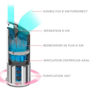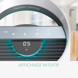 Trois vitesses de ventilation adaptent son usage : le mode bas conserve un niveau sonore modéré (65 dB max), pratique pour les nuits ou les espaces calmes. Les commandes tactiles simplifient l’ajustement, tandis que la technologie PureDirect répartit l’air purifié uniformément. Certains utilisateurs notent toutefois que le bruit devient perceptible aux vitesses supérieures.