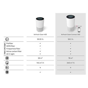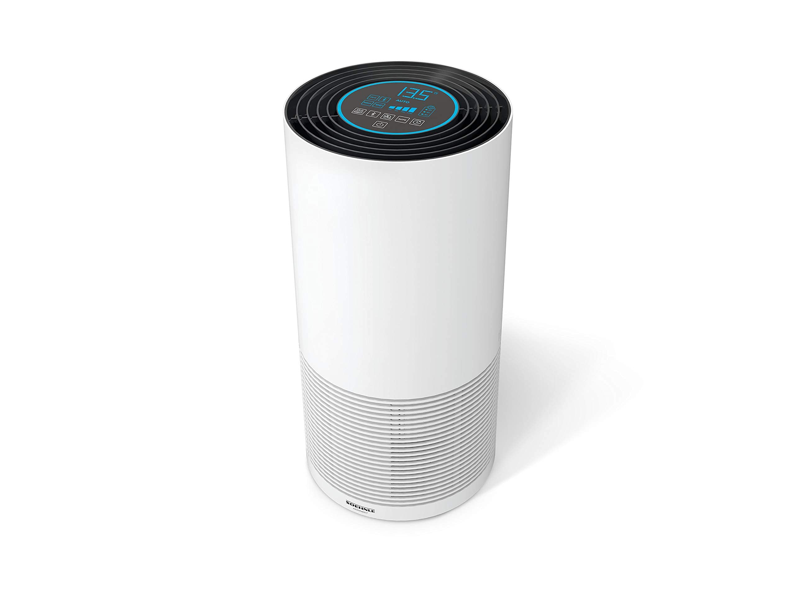 Le Soehnle AirFresh Clean Connect 500 combine une filtration multicouche et une connectivité Bluetooth pour une gestion via smartphone. Son anneau LED signale en temps réel la qualité de l’air, passant du bleu au rouge selon les particules détectées. Quatre vitesses de ventilation s’adaptent aux besoins : le mode nuit, quasi silencieux, convient aux chambres, tandis que la vitesse maximale traite rapidement les espaces jusqu’à 78 m².