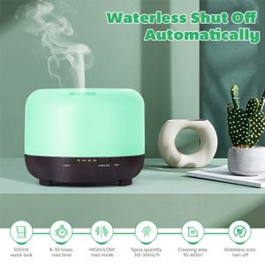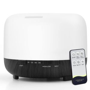 Diffuseur d'huiles essentielles 500ml avec télécommande, humidificateur ultrasonique et lumière LED 7 couleurs pour une atmosphère agréable.