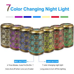 Son boîtier en métal doré apporte une touche vintage, différente des modèles en plastique courants. Les sept lumières LED offrent des ambiances variées – fixe ou en cycle – selon l’humeur du moment. Pratique, il s’éteint automatiquement quand le réservoir est vide, évitant les risques de surchauffe.