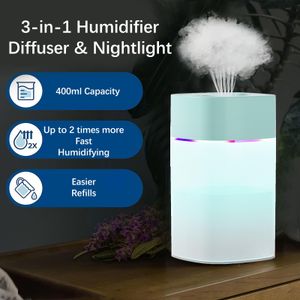 Humidificateur portable AOMiGT, 400 ml, super silencieux avec arrêt automatique et veilleuse colorée, idéal pour auto, maison ou bureau.