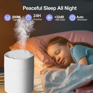 Mini humidificateur USB de 200 ML, compact et silencieux, idéal pour bureau, chambre ou voiture avec 7 couleurs de lumière LED.