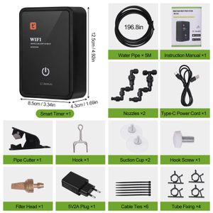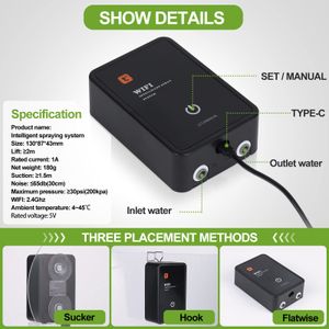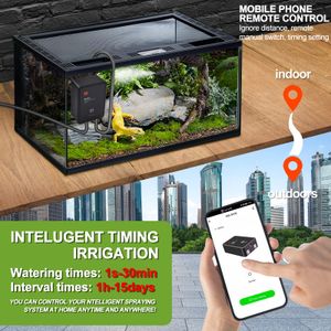 • Programmation flexible : Définissez durée (0-30s) et intervalles de brumisation (jusqu’à 15 jours). Le système mémorise vos réglages même après une coupure de courant.