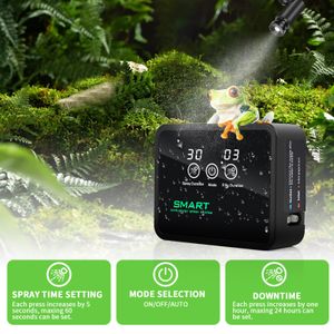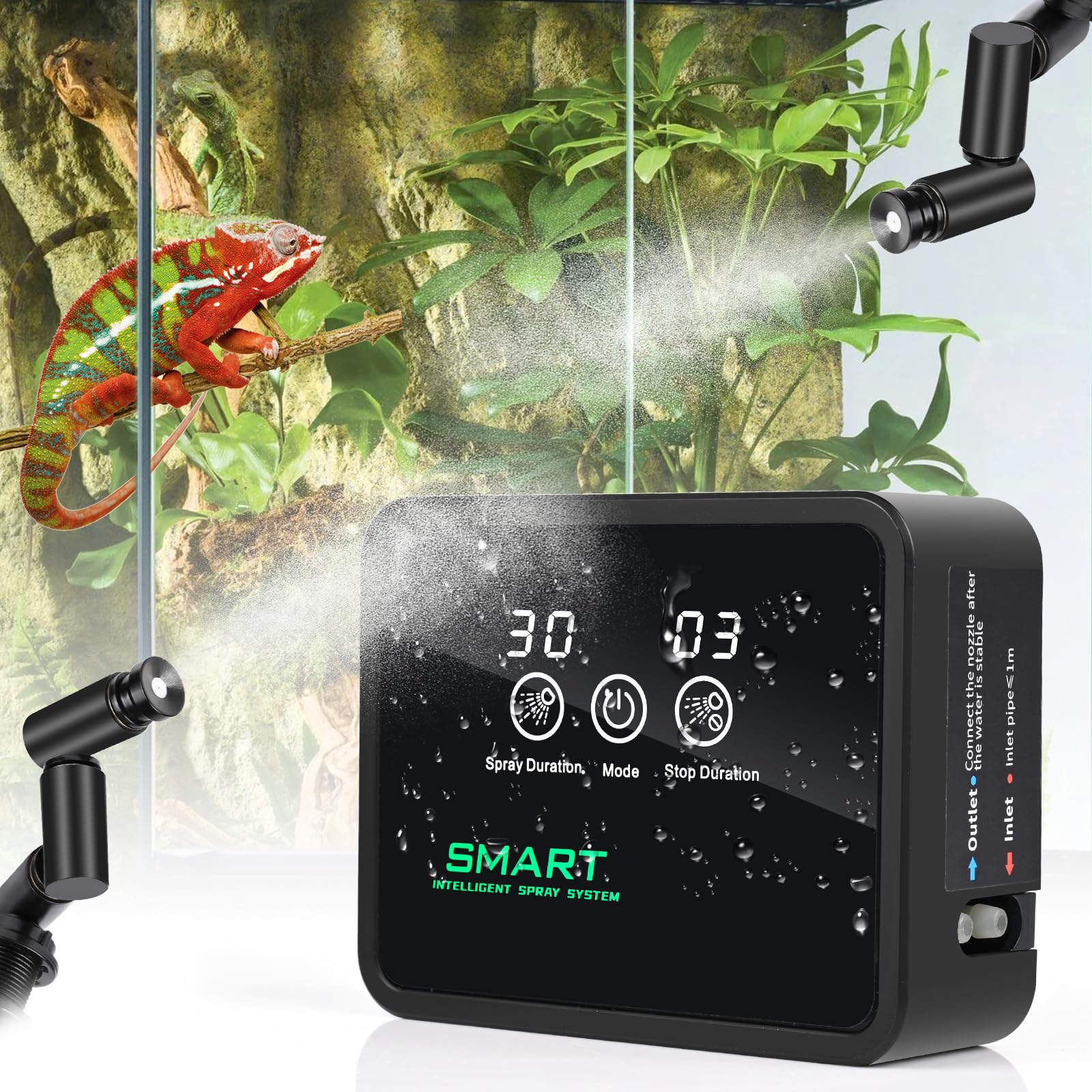 Conçu pour les habitats de reptiles, amphibiens ou plantes tropicales, cet appareil propose deux buses orientables à 360°. Vous réglez l’angle et l’intensité de la brumisation selon les besoins spécifiques de vos animaux ou végétaux. Un système de minuterie permet de programmer des cycles réguliers, même en cas d’absence prolongée.
