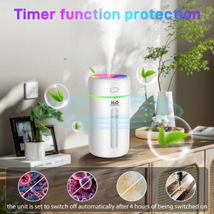 Humidificateur d'air compact et silencieux, idéal pour chambres, bureaux et voitures, avec 7 couleurs LED et autonomie de 6 heures.
