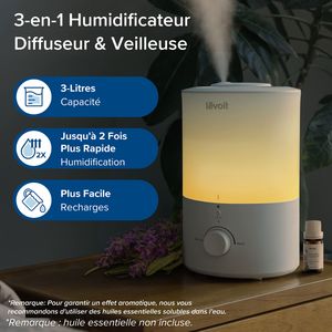 - Fonction 2-en-1 : Diffusez des huiles essentielles (solubles dans l’eau) pour créer une ambiance apaisante. Parfait pour un moment détente après une longue journée.