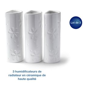 Lot de 3 humidificateurs d'air en céramique de Ligano, conçu pour s'adapter à tous les radiateurs avec des crochets universels.