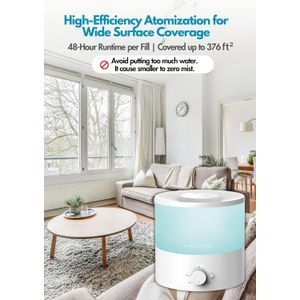 Humidificateur MEGAWISE à brume froide, idéal pour chambre, bureau et chambre de bébé, avec fonction diffuseur d'huiles essentielles.